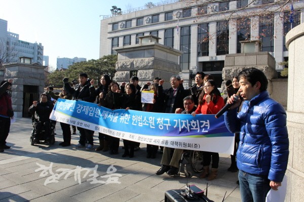 정신장애인 강제 입원 폐지를 위한 헌법 소윈 기자회견이 14일 오전 10시 정신보건법 폐지 공동대책위원회(준) 주최로 헌법재판소 정문 앞에서 열렸다.