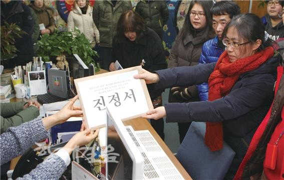 | ▲ 정신병원 장기·강제입원 피해자 198명 대표단이 인권위에 진정서를 제출하고 있다. | ||