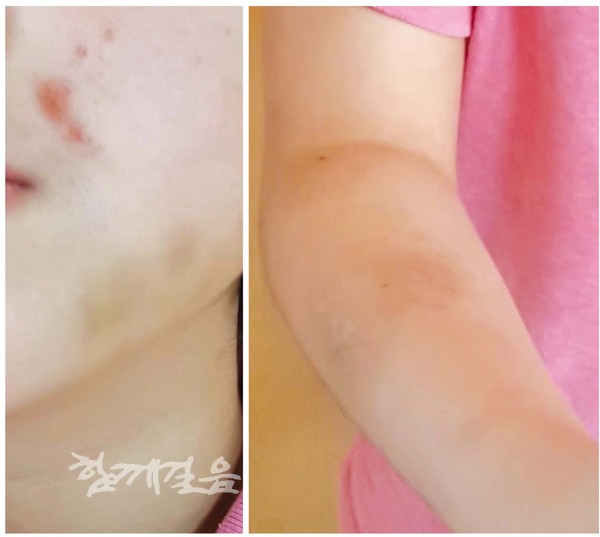 | ▲ B시설에서 생활하는 장애아동의 팔에는 폭행으로 의심되는 멍자국이 남아 있었고, 아이는 사무국장이 때렸다고 진술했다. | ||