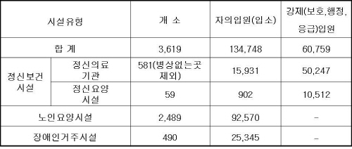 | ▲ ※정신보건시설 등 현황(2011년 기준) / 자료제공: 법무부 | ||
