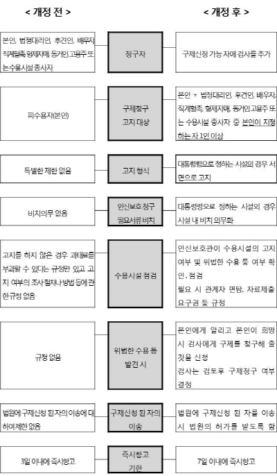 | ▲ 인신보호법 개정 전·후 비교표(자료제공: 법무부) | ||
