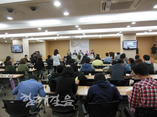 제작보고회는 한발연 김명실 소장의 제작과정 소개 후 전국장애인차별철폐연대 박옥순 사무총장의 진행으로 ‘알기 쉬운 장애인권리협약제작위원회(이하 알권위)’ 이원무, 신승희, 신현욱, 장민원, 조태환 위원들이 나와 장애인권리협약서 제작활동에 대한 소감을 전했다.