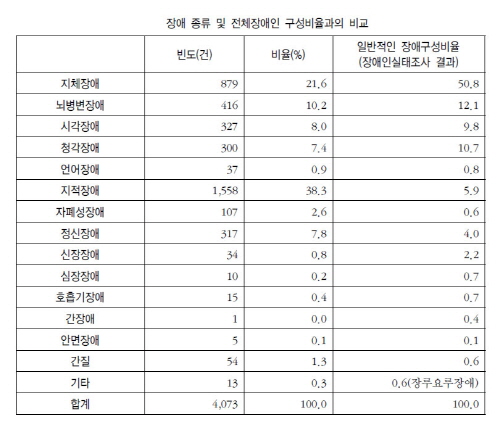 이 연구원은 “이와 같은 결과를 볼 때 인권센터는 물리적 접근의 용이성, 온라인 접근의 용이성, 청각 및 지적장애인을 위한 의사소통 방법 마련 등이 필요하다”고 제안했다.