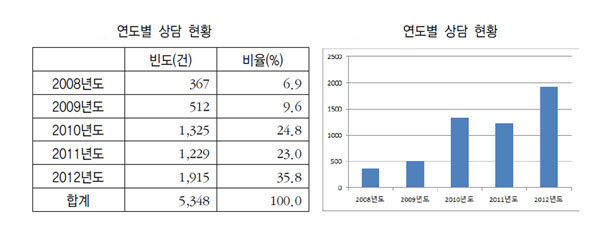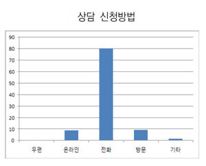 연구결과에서 상담신청 경로를 우선 살펴보면, 전체의 80.3%에 해당하는 4,295건의 상담이 주로 전화로 이루어졌다. 반면, 청각장애나 지적장애인은 전화상담이 어려워 방문하는 경우가 많았고, 시각장애와 지적장애의 경우 온라인 활용이 적은 것으로 나타났다.