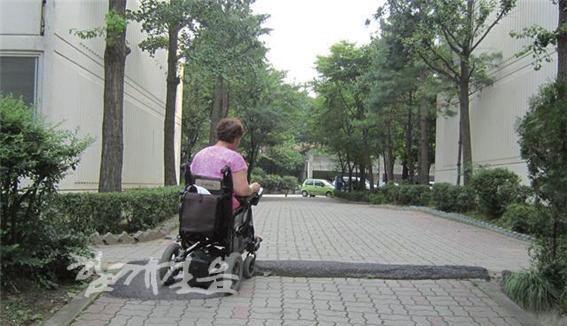 이 씨는 “오토바이나 자전거의 경우 바퀴가 크기 때문에 지나다니는 데 문제가 없다. 그러나 휠체어나 유모차의 경우, 방지턱에 걸려 자칫 잘못하면 뒤로 넘어갈 수 있고, 힘겹게 지나가야 한다”면서 “이 방지턱은 비단 휠체어를 타는 장애인뿐만 아니라 노인, 유모차를 끄는 주민, 아이들 모두에게 위험할 수 있다”고 설명했다.
