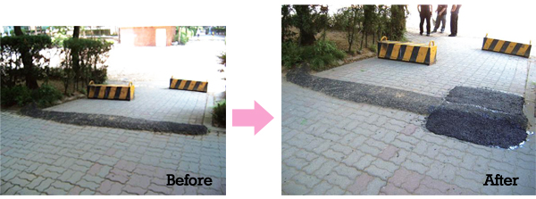 B단지 측은 휠체어 한 대 정도가 지나갈 수 있을 정도의 폭으로 놀이터 출입구 부근 방지턱 에 아스콘을 덧대어 보수하는 것으로 진행하도록 하겠다고 했고, 시간이 오래 걸릴 것을 우려해 복지관 측이 자체 비용을 들여 아스콘으로 경사로를 마련해줬다고 한다.