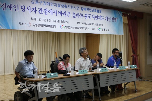 강동장애인자립생활센터와 한국장애인자립생활센터협의회는 11일 오후 서울 여의도 이룸센터에서 장애인활동지원제도 개선 방향 토론회를 열고 장애인 당사자 관점에서 바라본 올바른 활동지원제도에 관해 논의했다.
