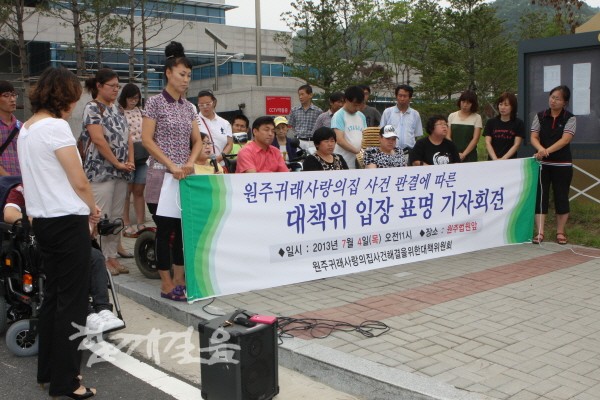이날 판결 후 원주지법 앞에서 열린 기자회견에서 원주귀래○○의집사건해결을위한대책위원회 이현귀 공동대표는 “J씨가 3년 6개월의 형을 받은 건 인정할 수 없다”며 “대책위는 이 판결에 대해서 항소를 준비할 것”이라고 말했다.