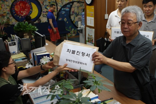 이날 기자회견을 마무리 한 후 장애인정보문화누리 대표단은 언론사들을 상대로 한 지체, 시각, 청각 장애인 176명의 진정서를 인권위에 접수했다.