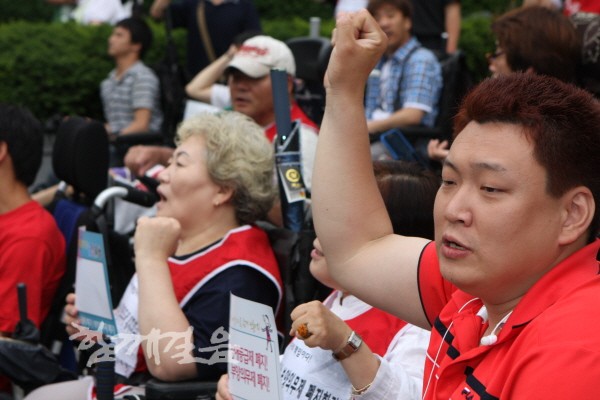 이날 투쟁대회에서 성동장애인자립생활센터 최진영 소장은 “장애등급제와 부양의무제 없애달라는 게, 사람답게 살게 해달라는 게 뭐가 그리 잘못인가”라고 한탄했다.