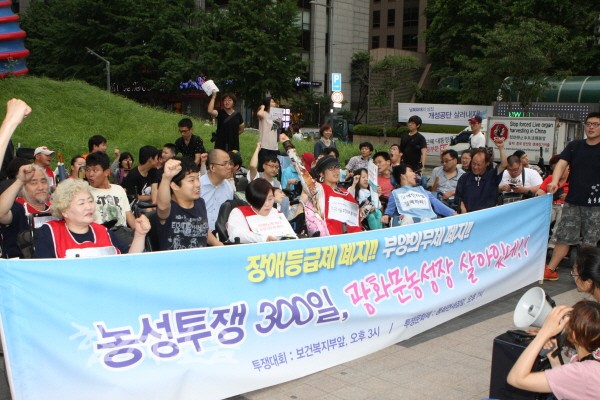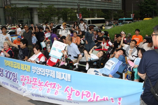 장애등급제 폐지와 부양의무제 폐지를 위한 광화문역 무기한 농성돌입 300일을 맞아 이를 기념하는 집회가 서울서 열렸다.