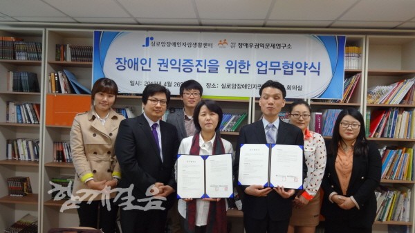 장애우권익문제연구소(이하 연구소)와 실로암장애인자립생활센터(이하 실로암)가 지난 4월 26일 장애인 권익증진을 위한 업무협약을 체결했다.