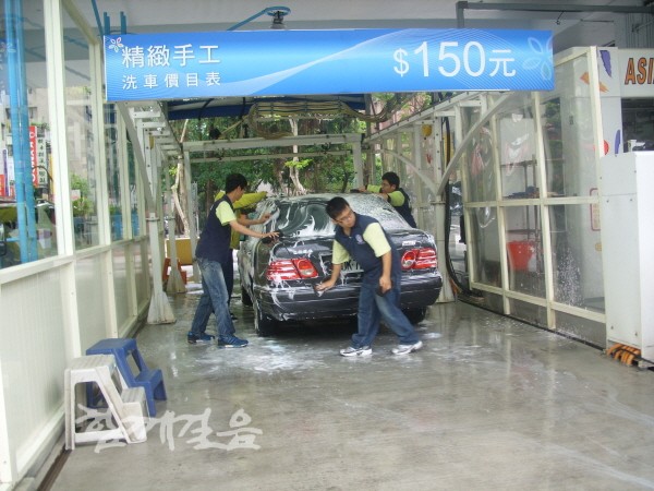 | ▲ 주유소 옆 세차장에서 지적장애인들이 세차를 하고 있다. | ||