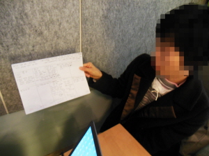 | ▲ J군의 어머니 이씨는 J군이 입학한 날부터 J군의 수업 및 활동일지를 기록해왔다. 이씨가 기자에게 수업을 받지 못한 시간들을 기록한 부분을 보여주고 있는 모습. | ||