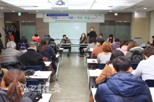 | ▲ 사회복지법인오순절평화의마을인권침해해결을위한공동대책위원회(이하 공동대책위)는 6일 서울 이룸센터에서 사회복지법인 오순절평화의마을의 산하시설에서 벌어진 장애인 인권침해를 알리는 증언대회를 열었다.ⓒ이승현 기자 | ||