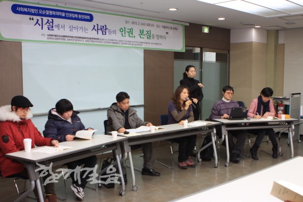 사회복지법인오순절평화의마을인권침해해결을위한공동대책위원회(이하 공동대책위)는 지난 6일 서울 이룸센터에서 사회복지법인 오순절평화의마을의 산하시설에서 벌어진 장애인 인권침해를 알리는 증언대회를 열었다.