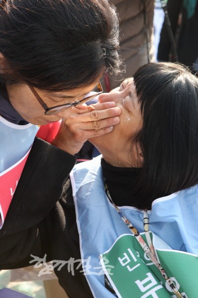 | ▲ 故 김주영 씨의 영정 앞에서 성동장애인자립생활센터 최진영 소장이 오열하고 있다 | ||