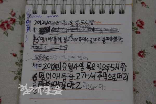 | ▲ 사건발생 후 A군이 수첩에 쓴 진술 기록 | ||