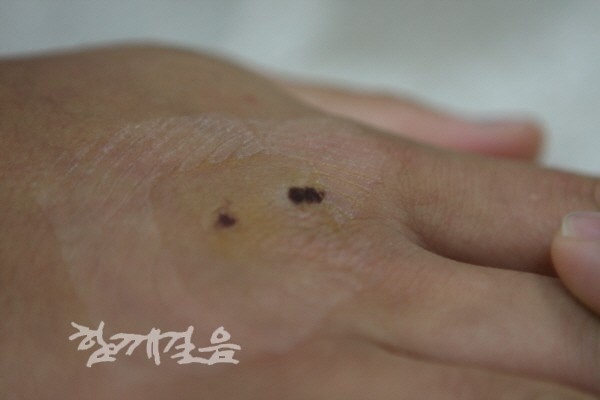 | ▲ 지난 10월 4일 가해 학생들이 A군의 손등에 담뱃불로 지진 상처 | ||
