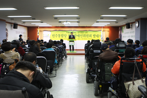 이날 전국장애인위원회발대식 및 정책협약식에는 장애인위원회의 공동위원장인 박은수 변호사와 최동익 국회의원, 중앙선거대책위원회공동위원장 이낙연 국회의원 등 민주통합당 관계자를 비롯해 수많은 대선장애인연대 관계자들이 참석했다.