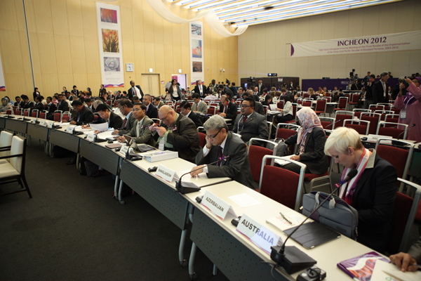 29일 오전 9시 30분 송도 컨벤시아 프리미어볼룸에서 개최된 고위급회의의 개막식에는 션이치 무라타(Shun-ichi Murata) ESCAP 사무차장과 보건복지부 박용현 사회복지정책실장을 비롯한 유엔 에스캅 회원․준회원국 37개국 180여 명의 정부대표단과 아태지역․국내외 시민사회단체 대표 등 약 370여 명이 참석한 가운데 열렸다.