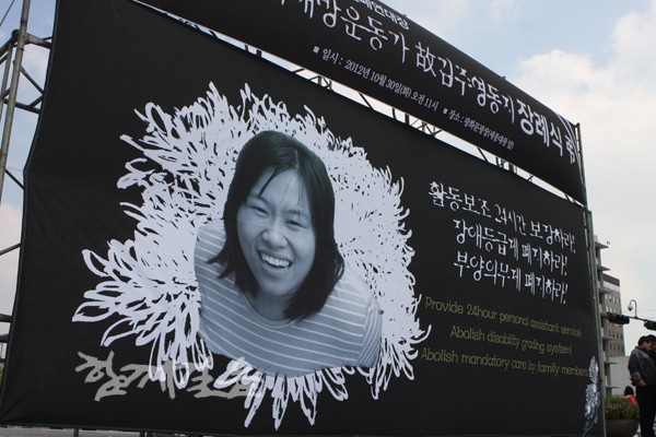 전국장애인차별철폐연대와 장애해방운동가 故김주영동지 장례위원회는 30일 오전 11시 서울 광화문 광장에서 장례식을 열고 김씨의 억울한 죽음을 애도하는 한편 활동보조 24시간 보장, 장애등급제·부양의무제 폐지를 요구했다.