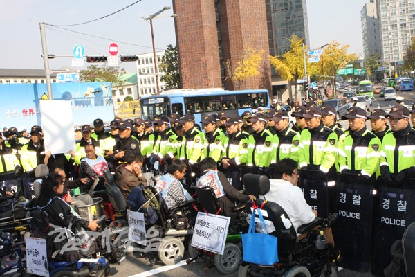 결국, 보건복지부 앞으로 향하던 이들은 경찰의 저지 탓에 더 이상 나아가지 못하고 오후 4시경 이날의 일정을 마무리 짓고, 대표단을 구성해 보건복지부 장애인서비스팀장 등과 면담했다.