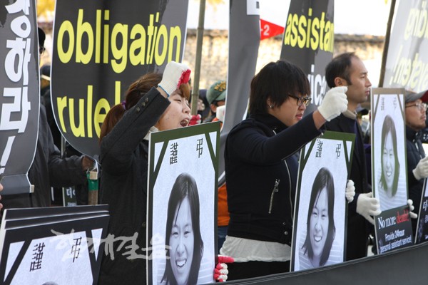 30일 오전 11시 찬바람이 몰아치던 서울 광화문 광장에 모인 장애인들은 억울한 그녀의 죽음에 절규하며 그녀의 이름을 부르짖었다. "주영아!"
