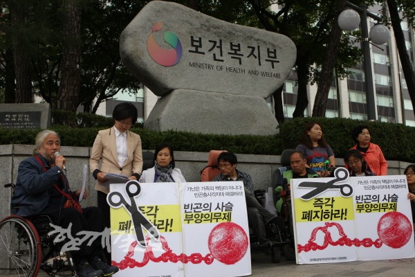 그는 이어 “우리가 원하는 것은 부양의무자 기준 폐지”라며 “복지부는 실제로 부양하고 있는지 없는지를 놓고 판단하는 것이 아니라 부양의무자의 소득만을 놓고 부양할 것이라고 간주해서 수급권을 박탈하고 있다”며 비판했다.