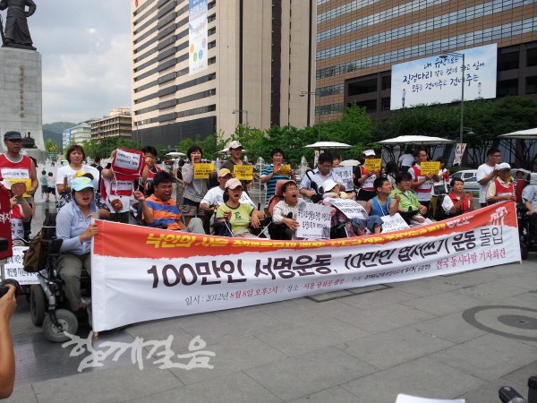 장애등급제와 부양의무제 폐지를 위해 '장애등급제·부양의무제 폐지 공동행동(이하 공동행동)'이 8일 서울 광화문광장에서 기자회견을 갖고 출범했다.