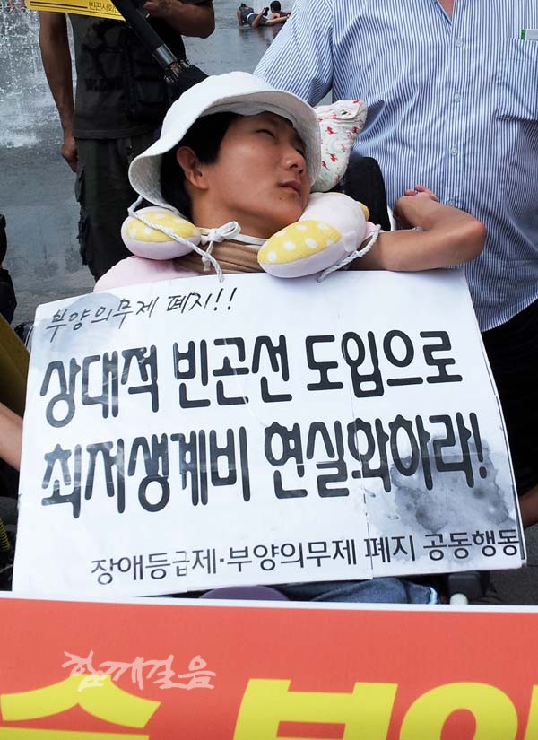 아울러 김 조직국장은 “몇 개월이나 한 번 볼까말까 한 가족들이 있다는 이유로 부정수급자가 되고, 결국 기초생활수급비까지 받지 못해 수많은 사람들이 죽어가고 있다. 진정 부정한 것은 우리가 아닌 가난을 만들어 내고 있는 이 사회다”라고 규탄했다. 또한 "개인의 필요와 사회 환경적 요소를 고려한 복지서비스 권리보장체계 마련해야 한다"며 "부양의무제로 빈곤의 책임을 가족에게만 떠넘기지 말고 인간이라면 누구나 누려야 하는 최저생계보장을 국가가 책임져야 한다“고 외쳤다.