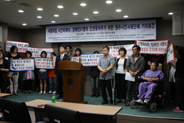 원주시민사회단체들, 원주시와 검·경찰은 장애인 인권유린 사건에 적극 개입하라!