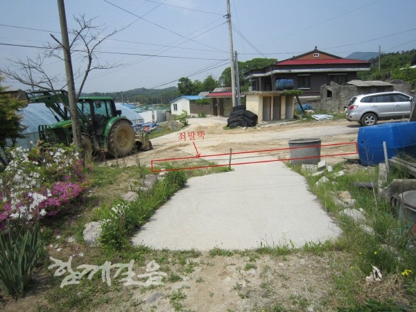 | ▲ 심 씨의 집과 ㄱ씨의 집 사이 A길에 고정된 쇠말뚝. | ||