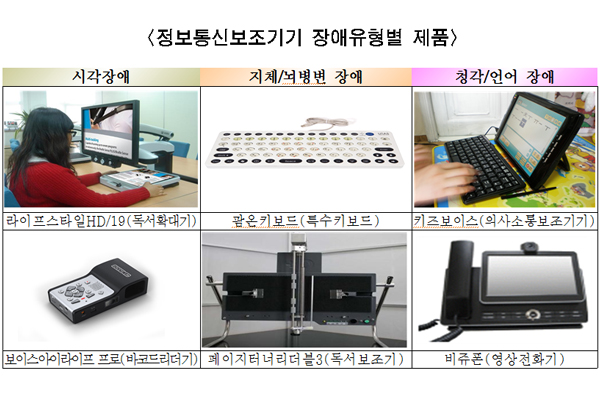 이번에 보급되는 기기는 시각(37종), 지체․뇌병변(14종), 청각․언어(18종)등 총 69개 제품이며 특히 지난해보다 7종이 늘었다.