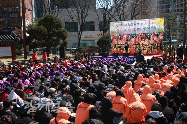 장애인 교육권 및 특수교사 법정정원 확보를 위한 연대회의(이하 연대회의)는 6일 서울 종로구 보신각 앞에서 전국 특수교육과 학생 등 1천500여 명이 모인 가운데 ‘장애인 교육권 확보 및 특수교사 법정정원 확보를 위한 결의대회’를 열고특수교육기관의 학급당 학생 수 기준 준수를 정부에 요구했다.