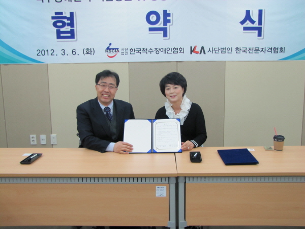 한국척수장애인협회는 한국전문자격협회와 지난 6일 서울 여의도 이룸센터에서 업무 협약식을 가졌다고 밝혔다.