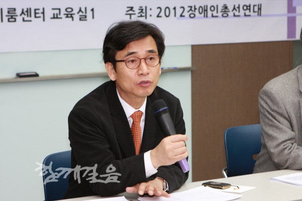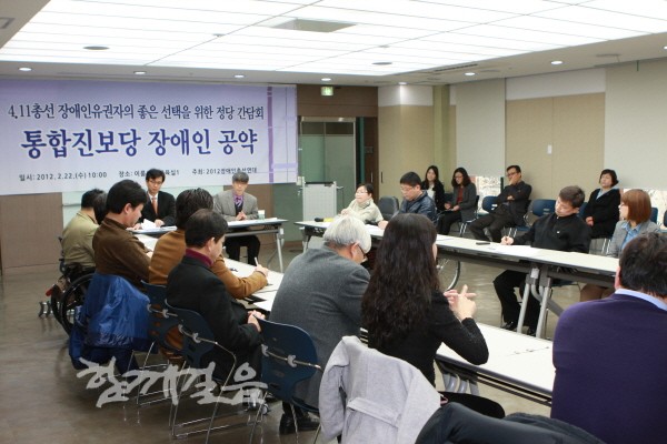 2012장애인총선연대는 20일 오전 서울 여의도 이룸센터에서 통합진보당 유시민 공동대표와 장애인정책 공약 간담회를 열었다.