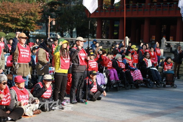 | ▲ 지난 11월 15일 오후 서울 보신각 앞에서 열린 '통(通), 전국 힘 모으기 대회'에서 참가자들이 공익이사제 도입을 포함한 사회복지사업법 개정을 촉구하고 있다. | ||
