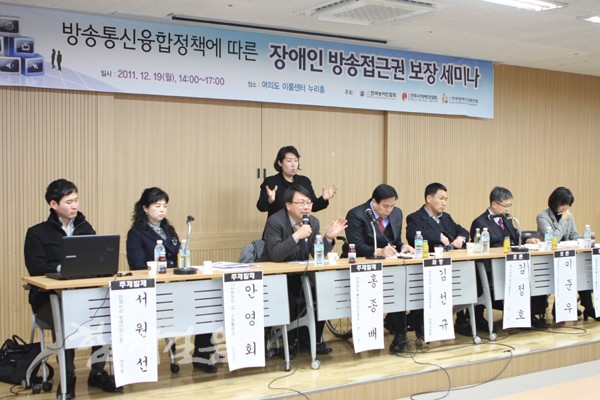 사단법인 한국장애인단체총연맹은 한국농아인협회와 함국시각장애인연합회와 함께 19일 오후 서울 여의도 이룸센터에서 '방송통신융합정책에 따른 장애인 방송접근권 보장 세미나'를 열고 방송의 사각지대에 놓인 시·청각장애인의 방송접근권 보장에 대한 참석자들의 열띤 토론이 이어졌다.