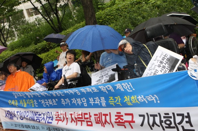 서울시는 7월 1일 중증장애인에게 기존의 월 230시간의 활동지원서비스를 최대 360시간까지 제공할 것이라는 발표를 한 바 있다. 그러나 이 내용이 서울시가 이전에 없던 추가적인 자부담을 2~6만원까지 부과시켜 중증장애인들의 반발을 사고 있는 것.