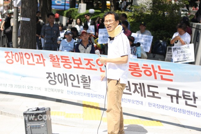 박홍구 한국뇌병변장애인인권협회 서울지부장은 “현재 활동보조서비스의 기본시간도 부족한데 추가시간이라는 말을 하고 있는 우리나라 정부 수준이 개탄스럽다”라며 “활동수가 역시 4년만에 300원 인상되었는데 이것 또한 그 동안의 물가 인상, 명목임금 등을 생각한다면 사실상 효과가 없다고 보아야 할 것”이라고 지적했다.