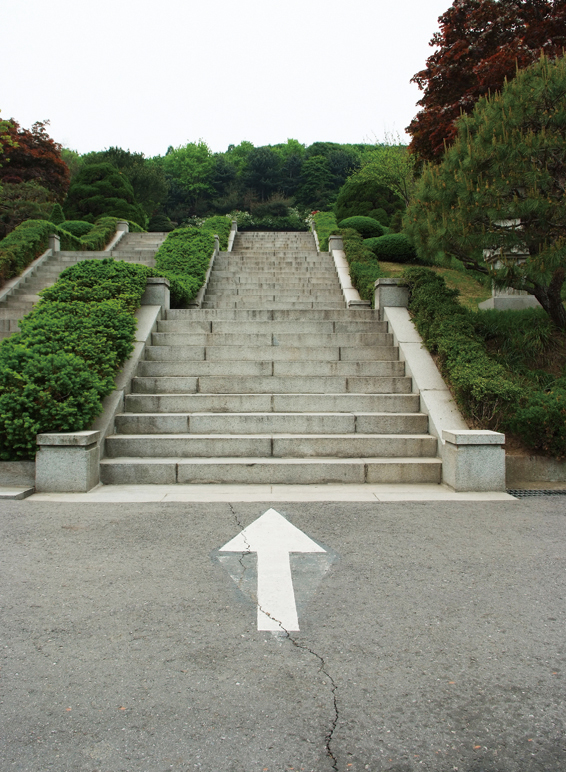 그 다음에 나타나는 건 20여 개의 육중한 계단이다. ‘장애인은 여기까지!’라는 안내판이라도 내걸어놓은 것과 무엇이 다른가. 어떻게든 올라갔다 해도 또 다른 계단들이 앞을 막는다. 보수든 진보든 뭐든 간에, 이념의 가치와 신념이 대입될 필요가 없는 게 전직 대통령 묘소의 참배이다. 대한민국 초대 대통령을 만나는 일이 보행 가능한 국민으로 제한된다는 점을 어떻게 받아들여야 할까? 계단을 오르내리며 떠오르는 생각은 난감함, 그것뿐이다.
