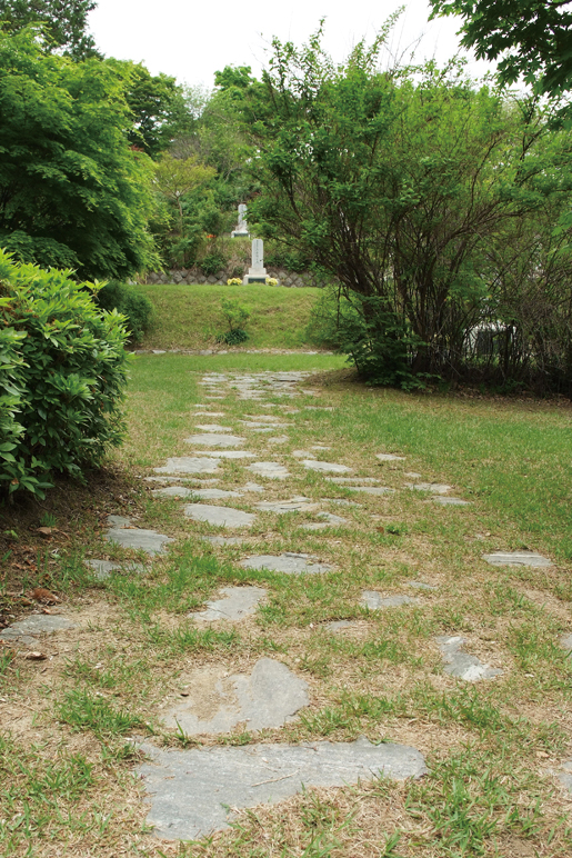 ‘위풍당당’이라는 단어가 절로 떠오를 장군묘역을 예로 살펴보자. 입구부터 경사로가 길게 이어져 있다. 가는 길이 힘들다 해도 방문할 마음을 갖고 있다면 어떻게든 올라가겠는데, 휠체어 바퀴가 감당하기엔 바닥면의 형태가 불편함을 가중시킨다. 게다가 다 오르고 나면 장벽과 같은 계단 구조물이 등장한다. 어떡하라는 건가. 거기까지만 눈으로 보고 가라는 뜻인가?