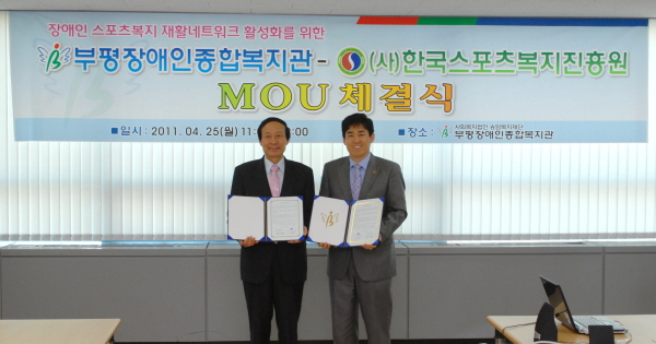 부평장애인종합복지관과 한국스포츠복지진흥원은 4월 25일 장애인 스포츠복지 및 재활복지 네트워크 활성화를 위한 업무협약을 체결했다.