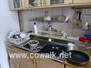 | ▲ 말라 죽은 화분과 제멋대로 쌓인 그릇들. 개수대 바닥에는 곰팡이가 가득 슬어 있었다. | ||