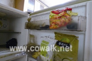 | ▲ 냉장고 문을 열자 숨이 막힐 정도로 지독한 악취가 새어나왔다. 지난해 여름 무렵 이후로 냉장고를 사용하지 않았을 것이라는 추측은 벌레가 들끓었던 흔적을 통해 알 수 있었다. | ||