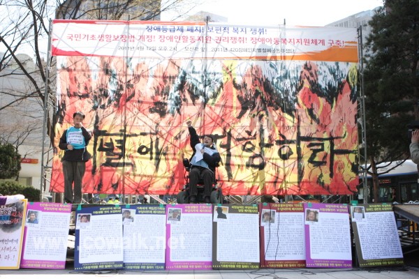 한편 420공투단은 지난달 26일 마로니에 공원에서 개최된 제7회 전국장애인대회를 시작으로 4월 11일에는 진수희 보건복지부장관과의 면담을 요구하는 1박2일 1인 시위를 진행했으며, 12일 오전에는 집단 수급권 신청 선포 기자회견, 장애성인교육 예산확보 촉구 교과부 규탄 기자회견 및 장애아동복지지원법 제정 촉구 결의대회 등을 서울 각지에서 진행했다.