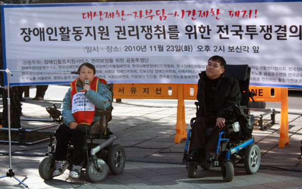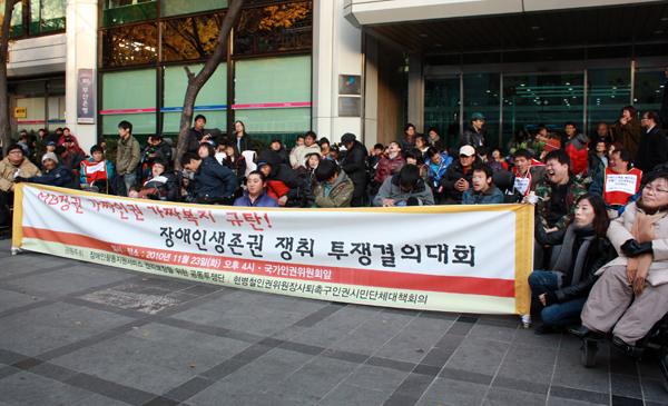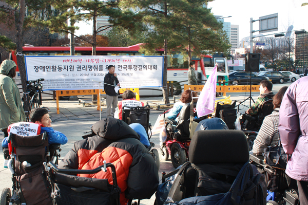 전국 각지에서 모인 백여 명의 장애인들은 국회에 제출된 정부의 장애인활동지원법에 대한 비판의 수위를 높이며, 활동보조와 자립 생활에 대한 의지를 공고히 했다.