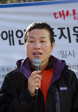 민용순 대표는 이어 “이 세상에서 무엇보다도 중요한 것은 물질이 아닌 사람이다. 그리고 장애인들도 사람이다. 그런데 비장애인들은 무상급식이다 뭐다 보편적 복지로 가는 이때에 장애인들은 여전히 시혜적 복지를 받고 있다. 나는 내 아이가 지역사회에서 여가를 즐기며 살아갈 수 있도록, 이 세상이 우리 것임을 확실히 알리기 위해 앞으로도 투쟁하겠다.”고 결의를 다졌다.