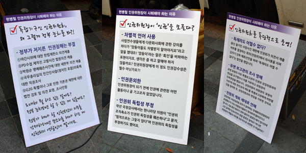명숙 활동가는 또 “이번에 인권위 상임위원으로 뽑힌 김영혜 변호사는 이명박 정부의 일에 너무나 헌신적인 사람인데, 앞으로 정권에 이바지했다는 이유로 인권과 전혀 무관한 인사가 인권위에 들어오지 못하도록 국가인권위원회법을 개정하는 운동을 벌이겠다.”고 밝혔다.